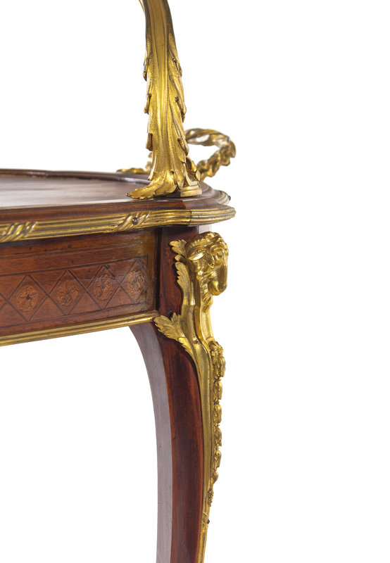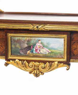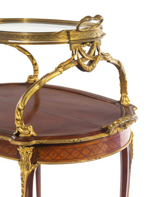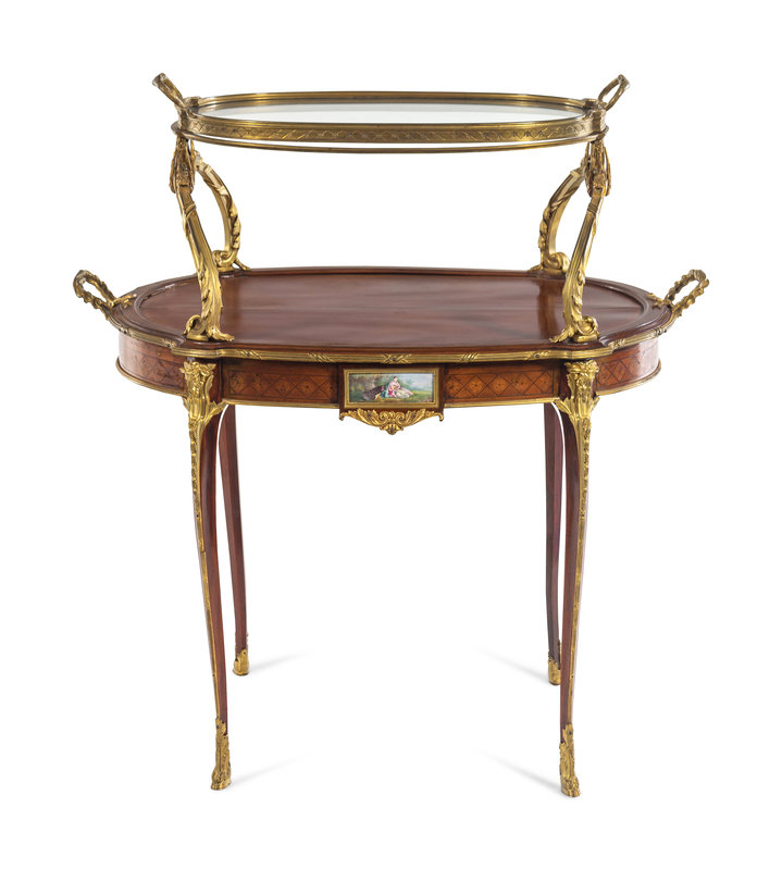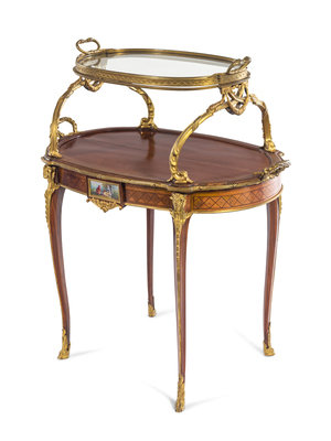 A Louis XV Style Gilt Bronze and Porcelain Mounted Two-Tier Serving Table
