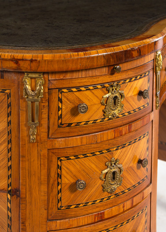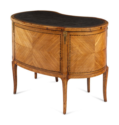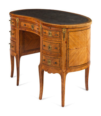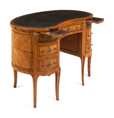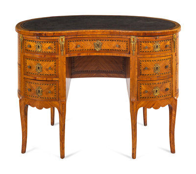 A Louis XV/XVI Transitional Style Kingwood and Parquetry Leather-Inset Reniform Bureau