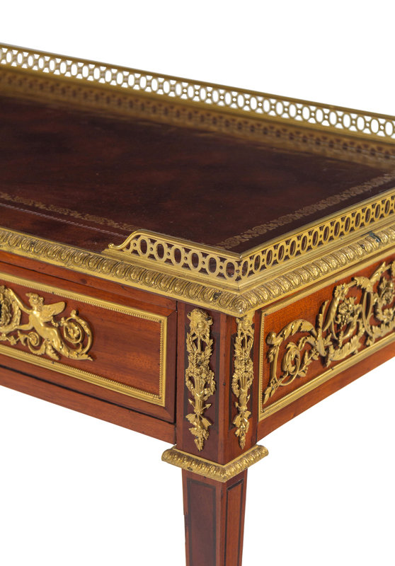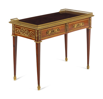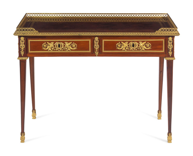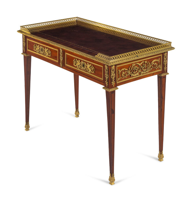 A Louis XVI Style Gilt Bronze Mounted Mahogany Table à Écrire
