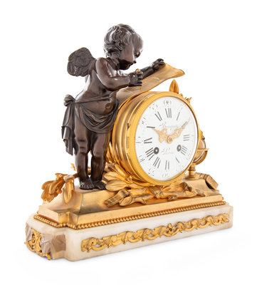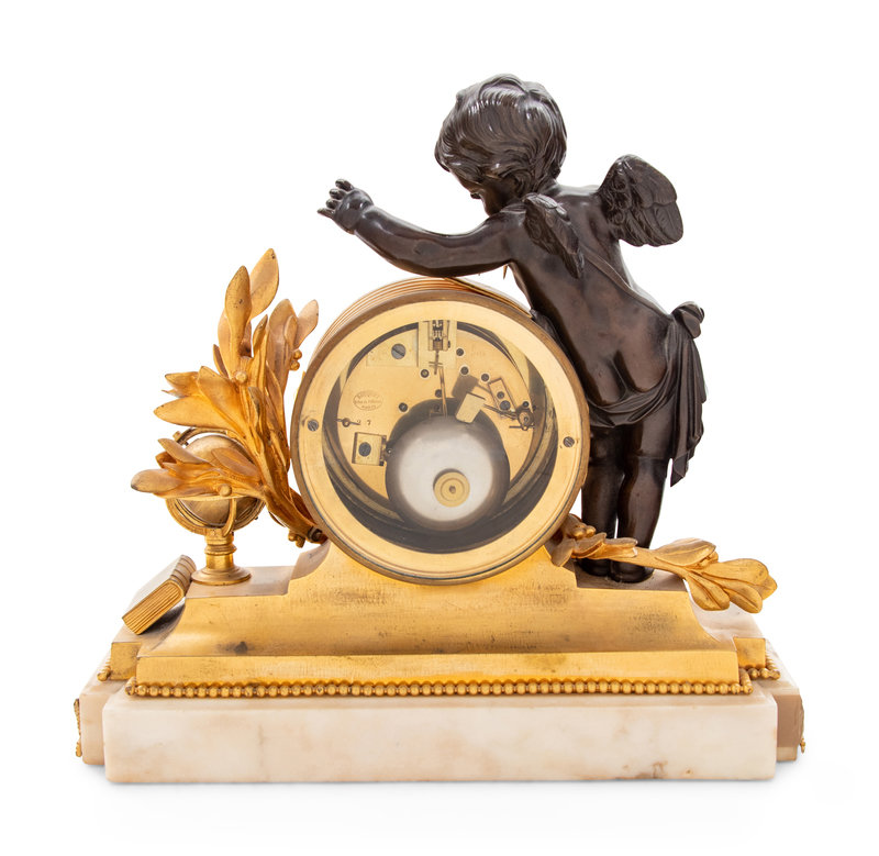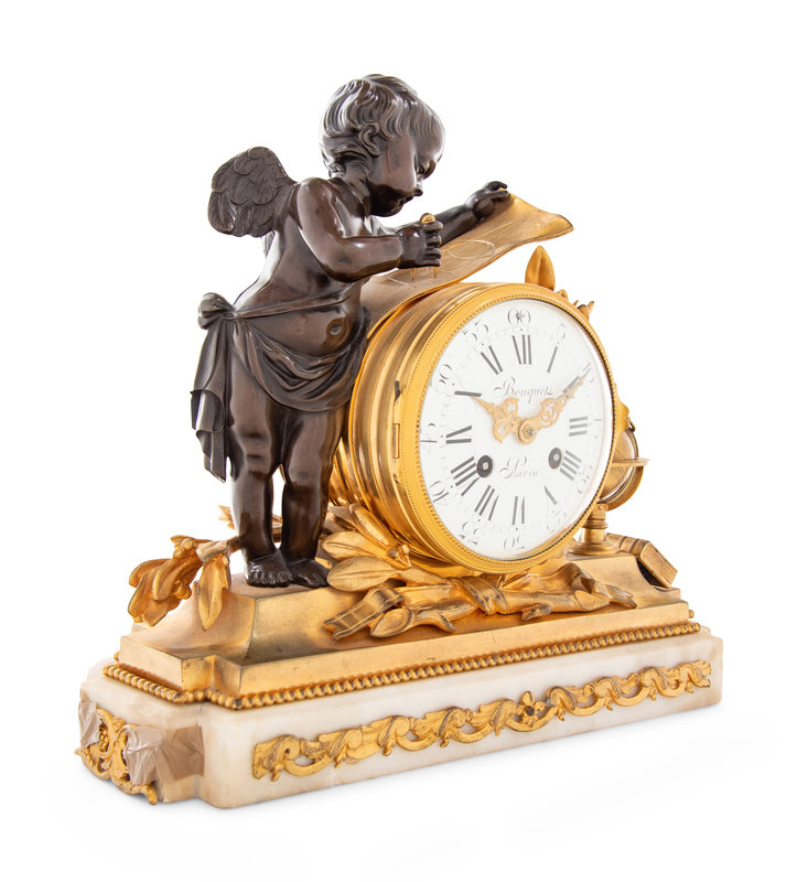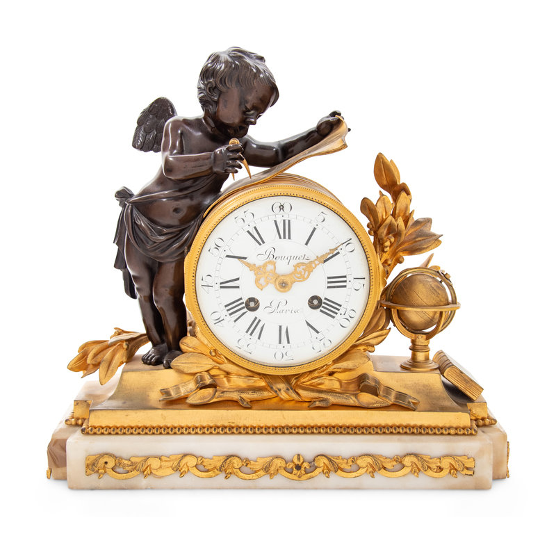 cast as a putto personifying Geometry, the movement stamped Bouquet/ 8 Rue de Provence/ Paris/ 27.