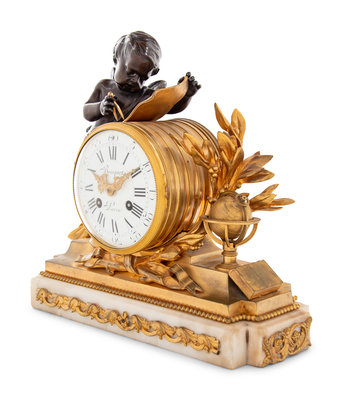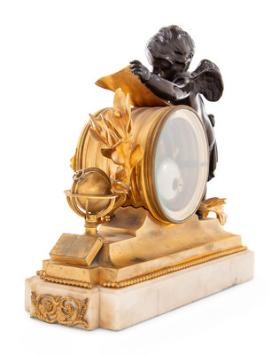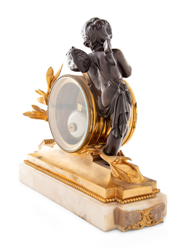 A Louis XVI Style Gilt and Patinated Bronze and Marble Mantel Clock