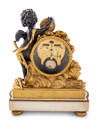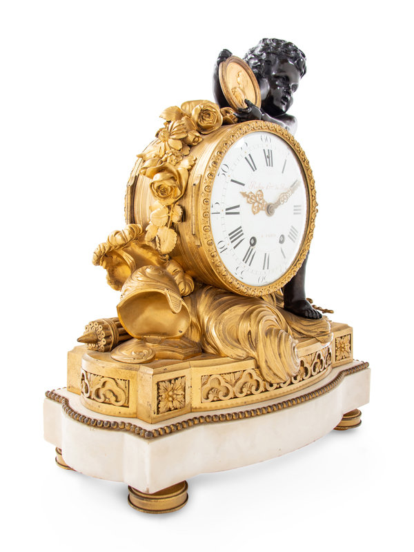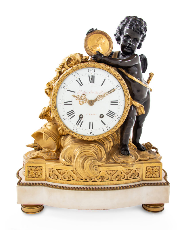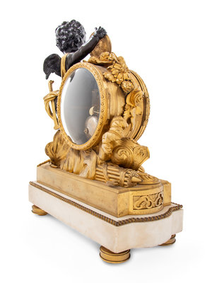 A Louis XVI Style Gilt and Patinated Bronze and Marble Clock