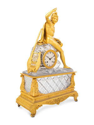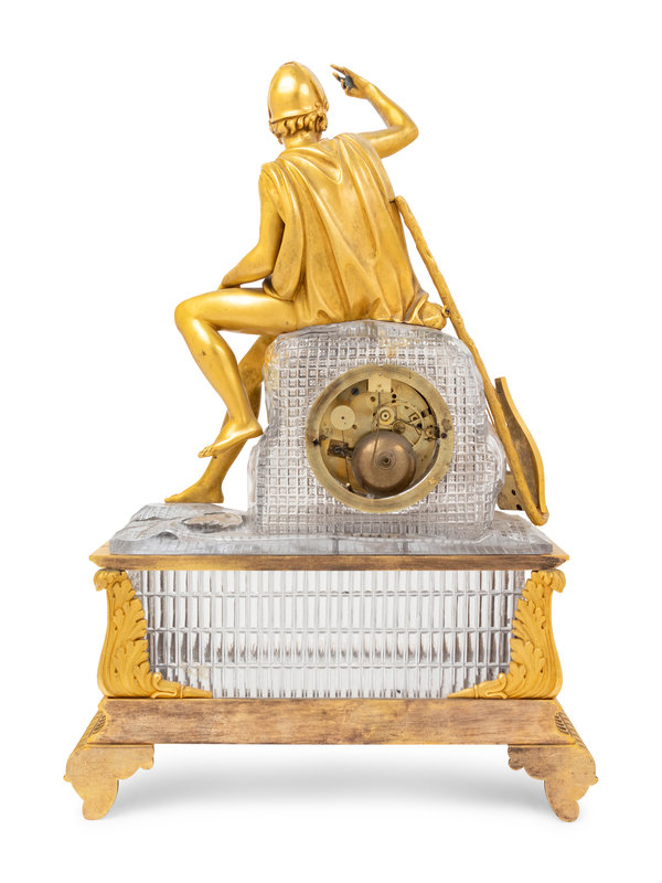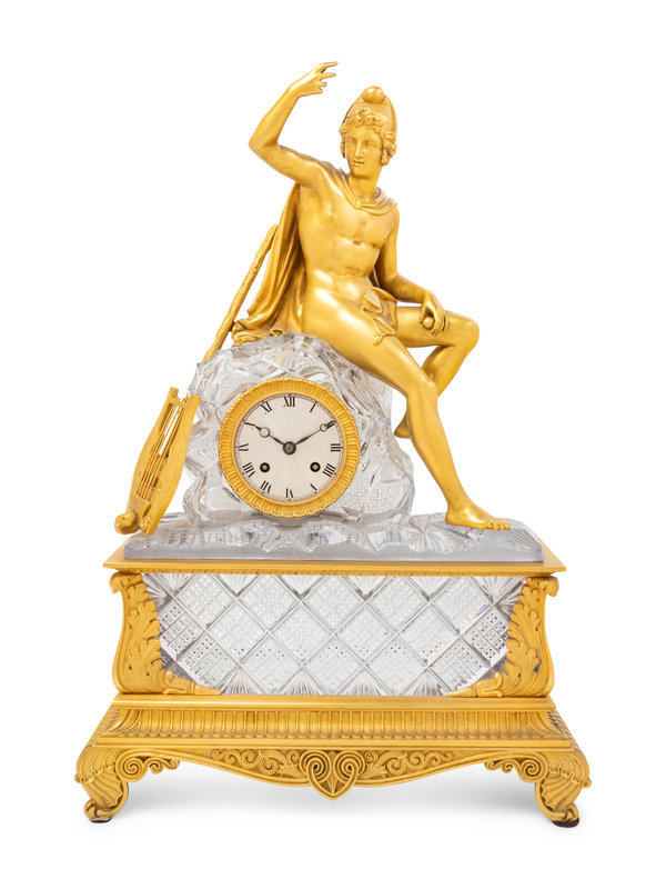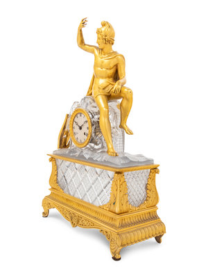 An Empire Style Gilt Bronze and Cut Glass Figural Mantel Clock
