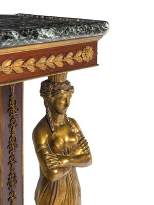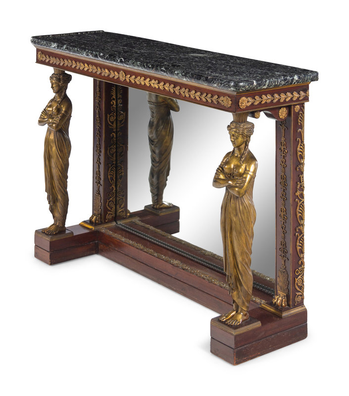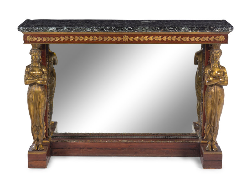 An Empire Style Gilt Bronze Mounted Mahogany and Mirrored Marble-Top Pier Table