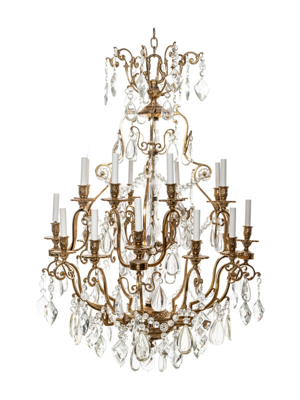 A French Brass and Cut Glass Twenty-Light Chandelier
