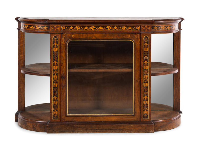 A Napoleon III Style Marquetry and Burl Walnut Console Cabinet