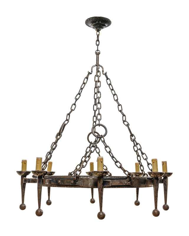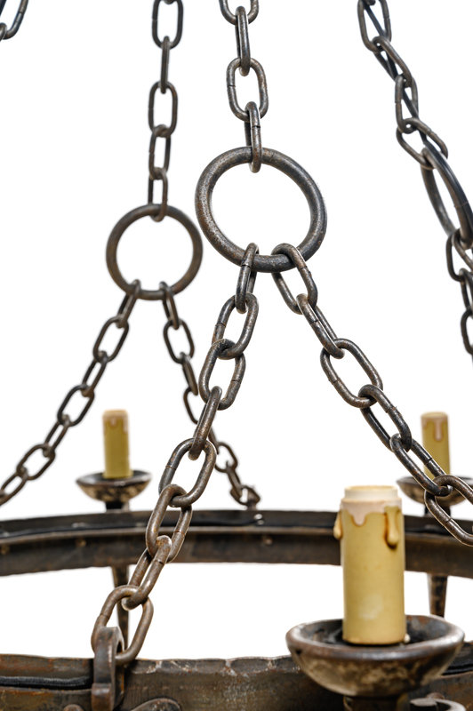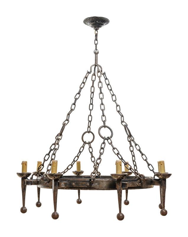A French Provincial Wrought Iron Eight-Light Chandelier