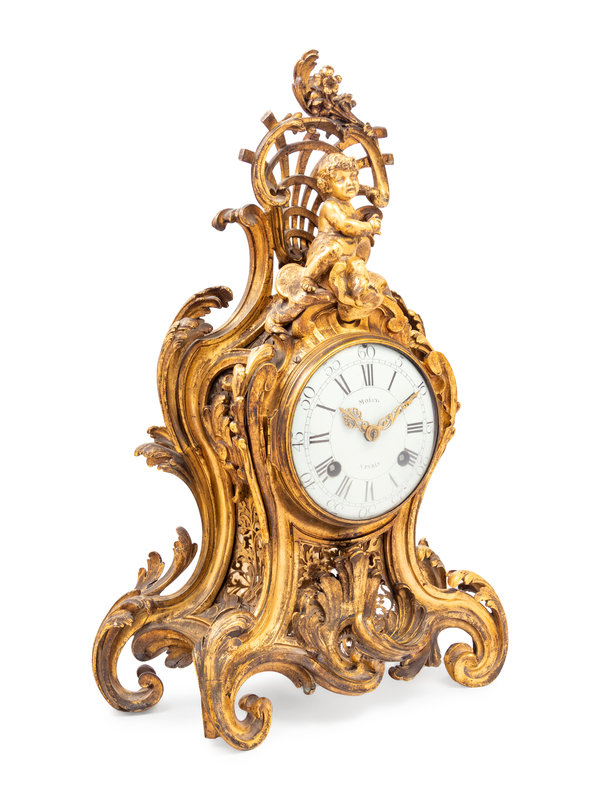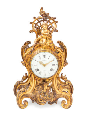 A Louis XV Gilt Bronze Clock and Stand