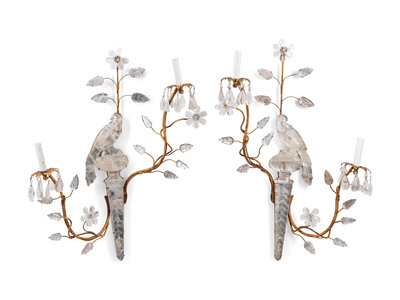 A Pair of Giltwood and Rock Crystal Two-Light Sconces in the Style of Maison Baguès