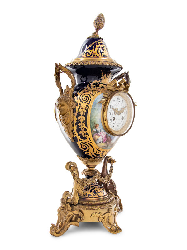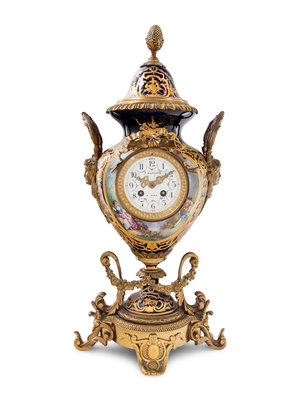 A Gilt Bronze Mounted Sèvres Style Porcelain Urn-Form Clock