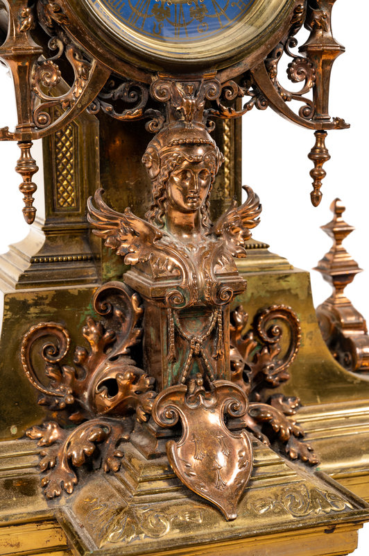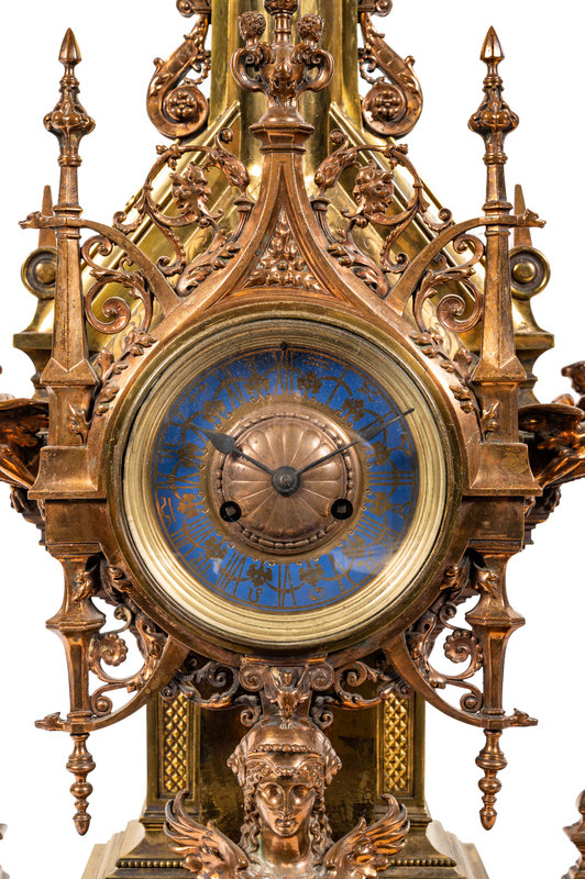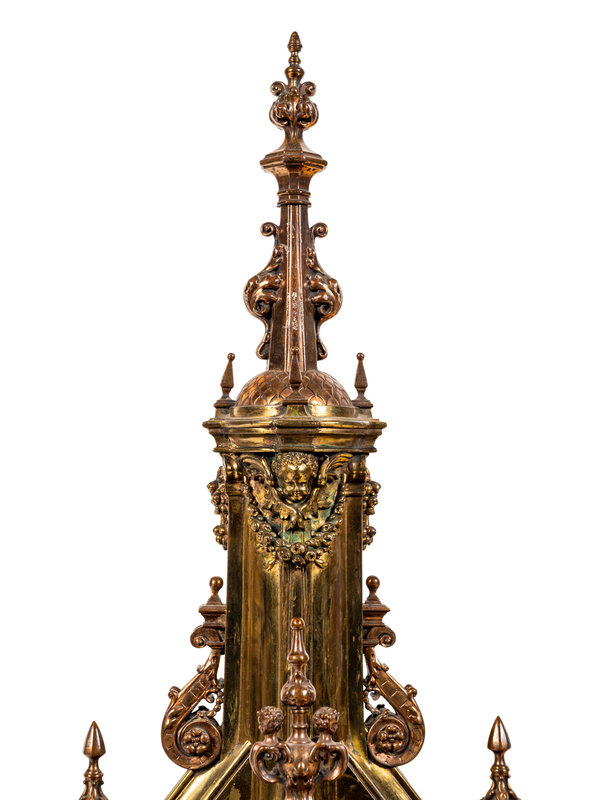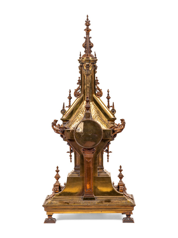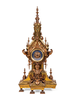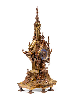 A French Gothic Revival Gilt Bronze and Brass Mantel Clock Retailed by Tiffany and Co.