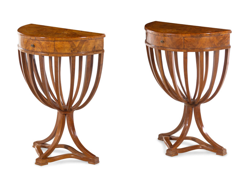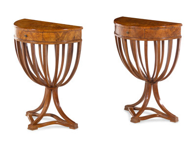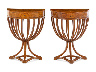 A Pair of Italian Neoclassical Style Burlwood Console Tables