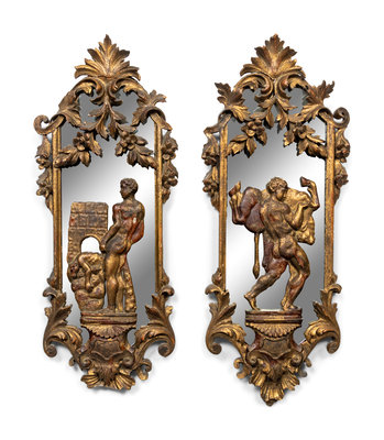 A Pair of Italian Carved Giltwood Mirrors