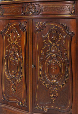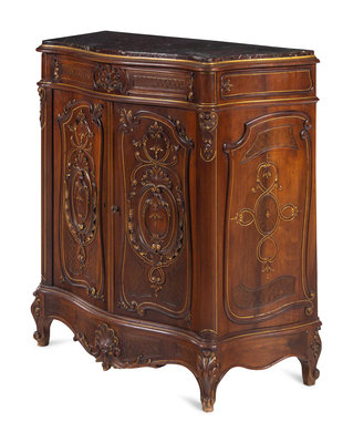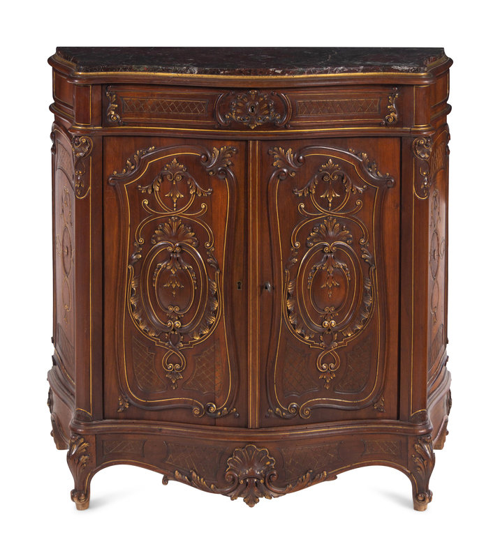 An Italian Carved Walnut Marble-Top Cabinet in the Louis XV Taste