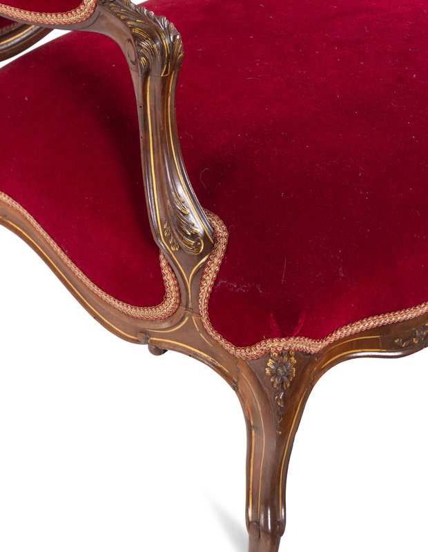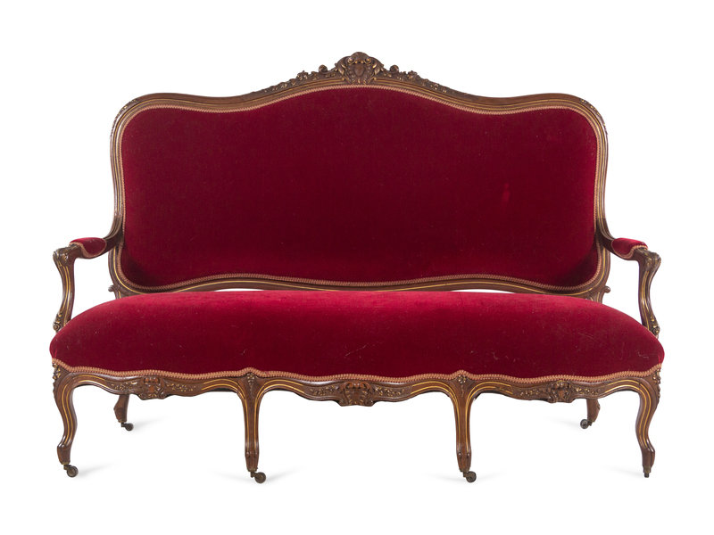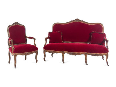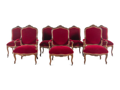 An Italian Louis XV Style Carved and Parcel Gilt Walnut Parlor Suite