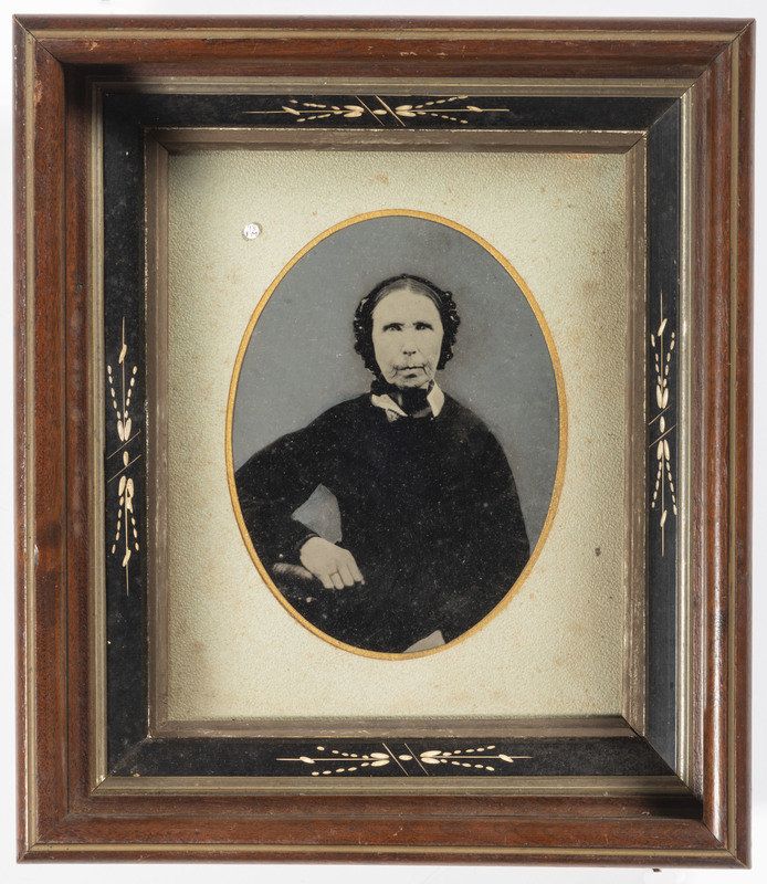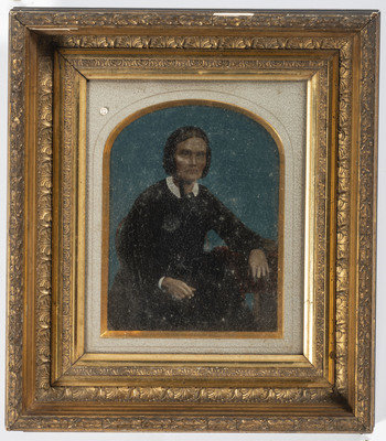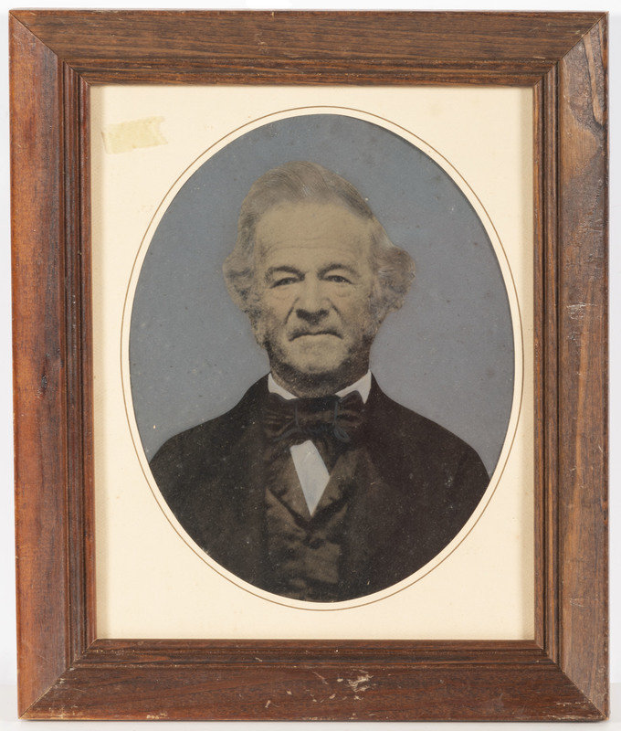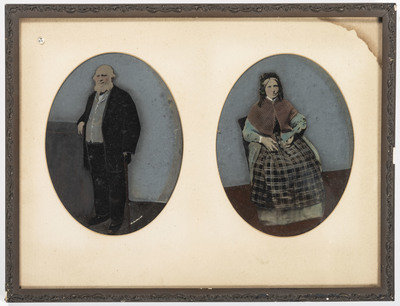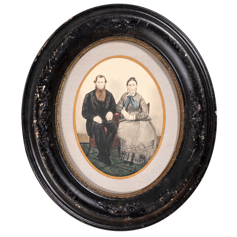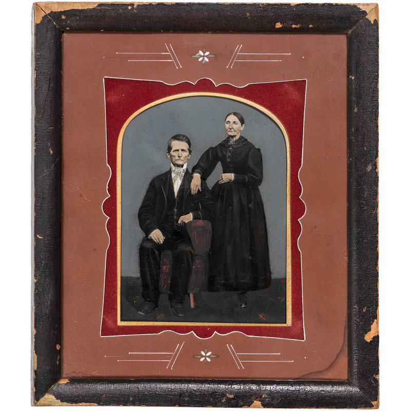 [With:] A hand-colored paper portrait of a couple, 5 1/2 x 7 3/8 in. (sight), matted and framed to 12 1/8 x 14 in. (Light soiling and spotting, unexamined out of the frame). Both subjects wear severe facial expressions.