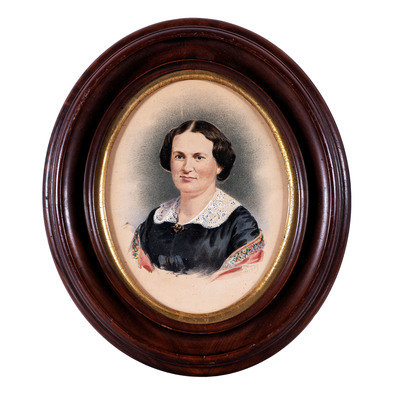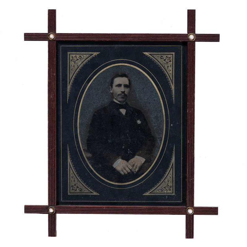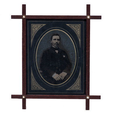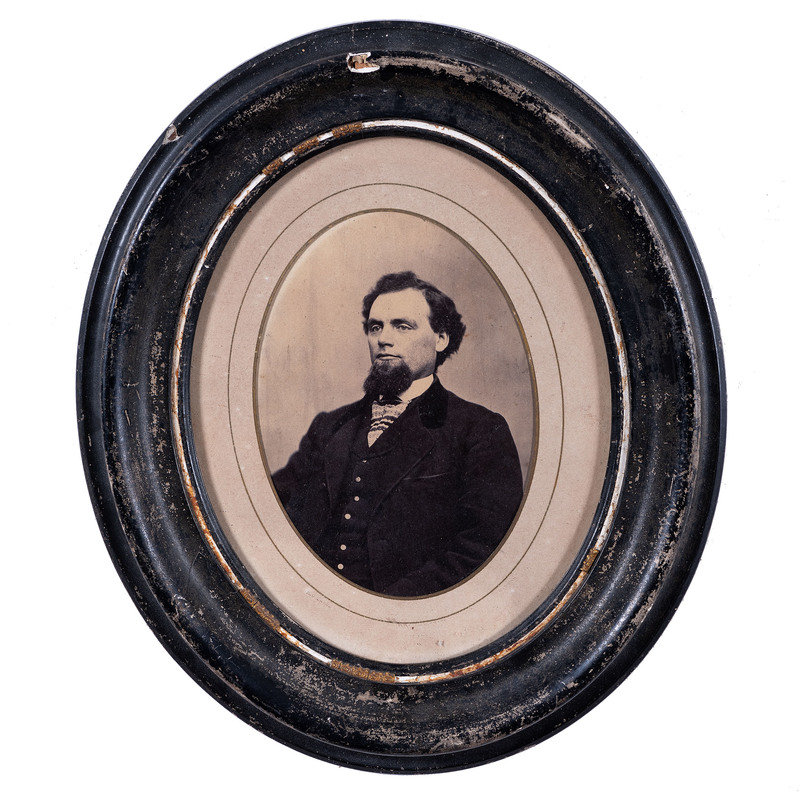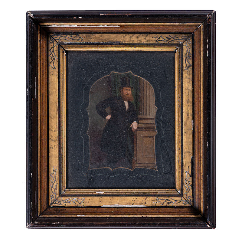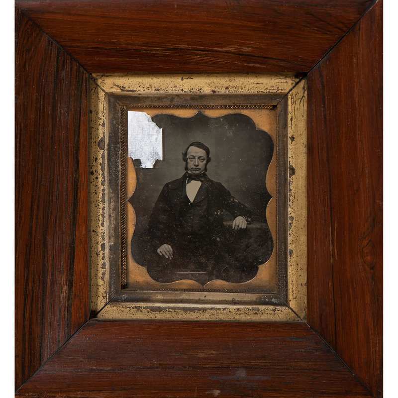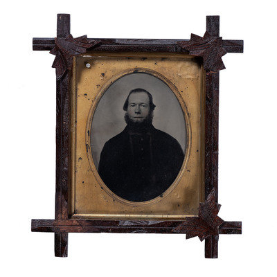 Albumen portrait of an Oddfellows member identified as Jacob Cooksey. N.p.: n.p., [ca 1850s]. 5 1/2 x 7 1/2 in. (sight), matted and framed to 13 1/4 x 15 1/4 in. Paper label framed with image features typeset identification of subject along with his initiation date (13 February 1851) and duration of service as Noble Grand (January through July 1853). -- Albumen portrait of an older Oddfellows member identified as William Downs. N.p.: n.p., [ca 1860s]. 5 1/2 x 7 1/2 in. (sight), matted and framed to 13 1/4 x 15 1/4 in. Paper label framed with image features typeset identification of subject along with his initiation date (17 December 1863). -- Full plate tintype portrait of a middle-aged man with full, curly beard. New Orleans: E. Jacobs, n.d. 5 7/8 x 8 in. (sight), matted and framed to 13 x 15 in. -- Hand-colored possible ambrotype portrait of a young man with goatee. New Orleans: Jac. Laufer, n.d. 6 x 8 in. (sight), matted and framed to 9 3/4 x 11 3/4 in. -- Albumen portrait of a man with a prominent goatee and interesting neck accessory. Bangor, ME: M.G. Trask, n.d. 5 x 7 in. (sight), matted and framed to 11 3/4 x 13 1/2 in. Photographer's blind stamp on mat. -- And 6 other portraits. -- Together, 11 framed portraits, condition generally fair, unexamined out of the frames.