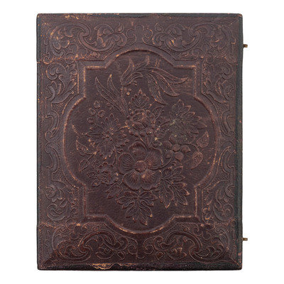 Quarter plate tintype. (Some scratches in upper area.) Housed in full pressed paper case (minor scuffs).
