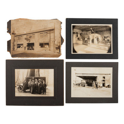[EARLY PHOTOGRAPHY] --[AUTOMOBILES]. A group of photographs of early automobiles, mechanics and auto shops, including racing action shots, comprising: