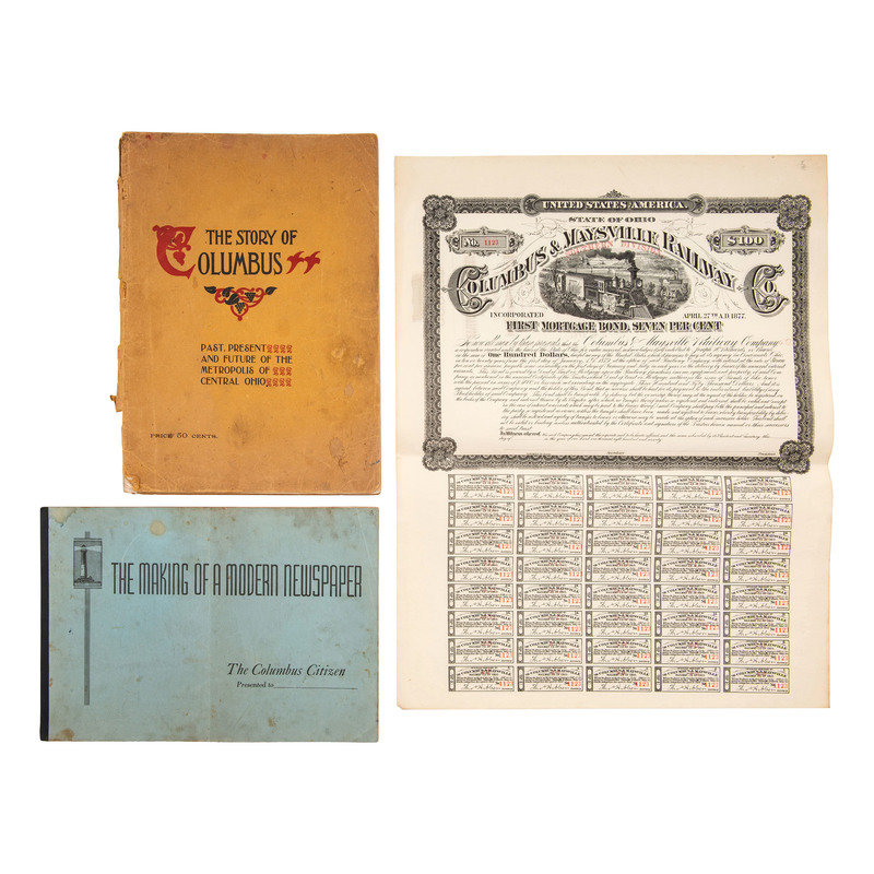 The Story of Columbus: Past, Present and future of the Metropolis of Central Ohio. Columbus: Johnson Publishing, 1898. Folio, printed wraps, 80pp. (wraps coming loose)