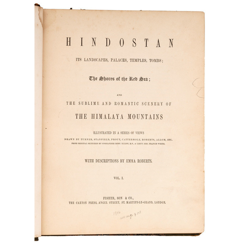 [INDIA]. ROBERTS, Emma. Hindostan. Its Landscapes, Palaces, Temples, Tombs; The Shores of the Red Sea; and the Sublime and Romantic Scenery of the Himalaya Mountains. London: Fisher, Son & Co., [ca 1846].