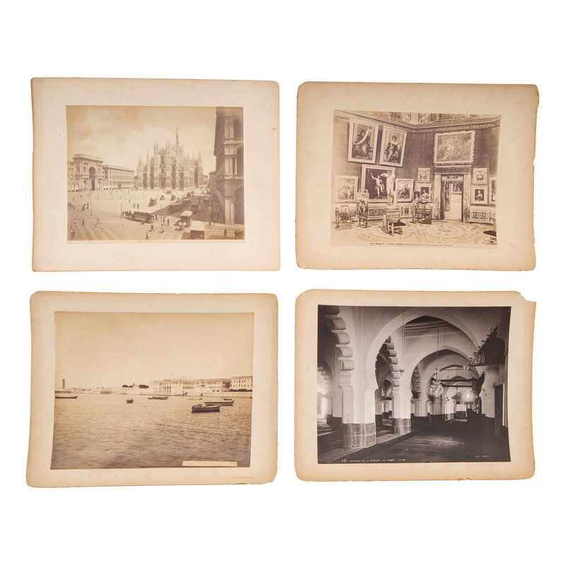 6 photographs, 8 x 10 in., on 11 x 14 in. mount, showing 4603 Milano Piazza del Duomo-- 37?? Palals de Ras-el tin(?)-- 1322 Firenze --Galleria Uffizi la Tribuna (Buontalenti e Poccetti.)--497 Interieur de la Mosque el-Kebir--N220 Alexandrie--Vue du Nil Mouharom--33 Musee de Chuny du rez-de-chaussee.