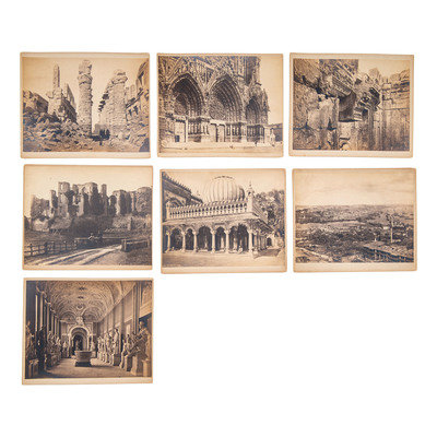 12 photographs, 7 x 8 1/2 in., showing 1878 Hall of Columns, Carnac-- 315 Kenilworth-- 1725 Constantinople----3755 Rheims Cathedral--Interior of Cathedral-- Statue of Male form--3076 The Zenana Agra --3512 Westminster Abbey--3330 Choir--612 Doorway: Baalbek--2934 Vatican Rome--4047 Notre Dame Paris.