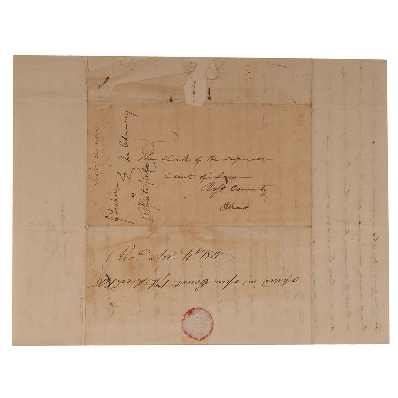 A partially printed arrest warrant from ross County, OH for Samuel Smith is on an old form with “Territory….North West of the river Ohio” crossed out and “State of Ohio” written in. 31 Jan. 1803. This one is signed by Thomas Scott as Prothonotary. Scott would serve as Secretary of the Ohio Constitutional Convention and later on the Supreme Court of Ohio (among other positions, such as registrar at the land office in Cincinnati).
