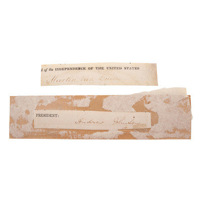 [With:] Clipped secretarial signatures of Andrew Johnson ("Andrew Johnson," 1767-1845, President 1829-1837) and Martin van Buren ("Martin van Buren," 1782-1862, President 1837-1841). Each 1 x 5.5 in.
