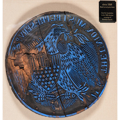 [LINCOLNIANA]. Patriotic hand-carved woodblock used for printed political campaign broadsides. N.p.: n.d., [ca 1860].