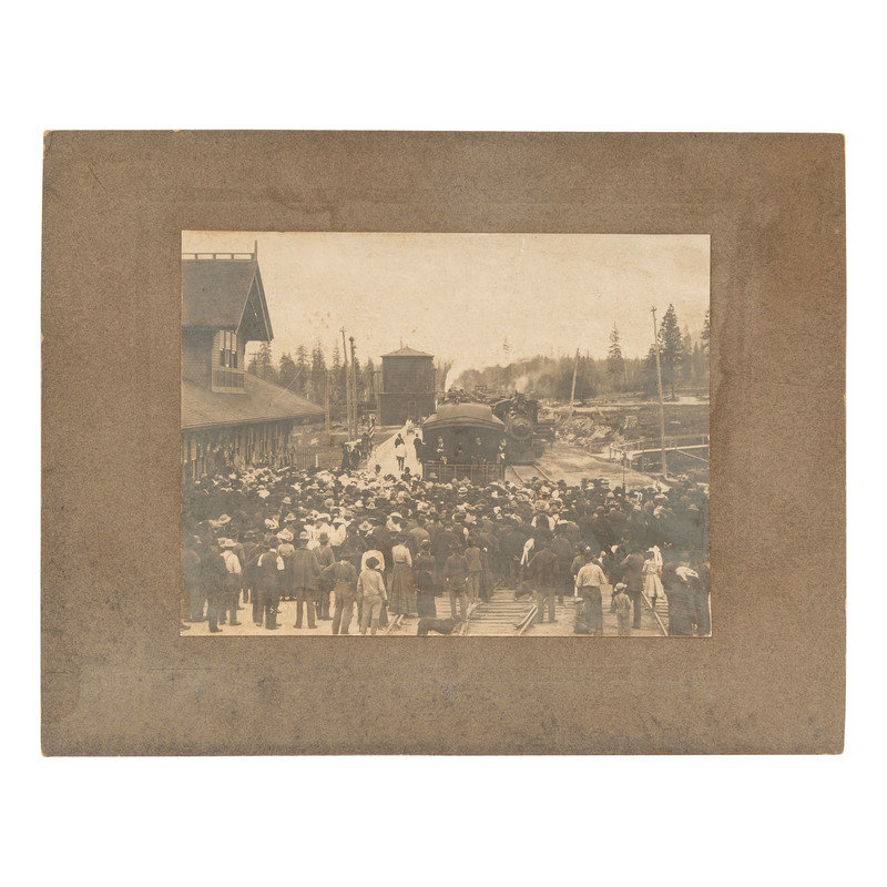 ROOSEVELT, Theodore (1858-1919). Outdoor image of whistle stop tour. [Shasta Springs, CA], n.d.