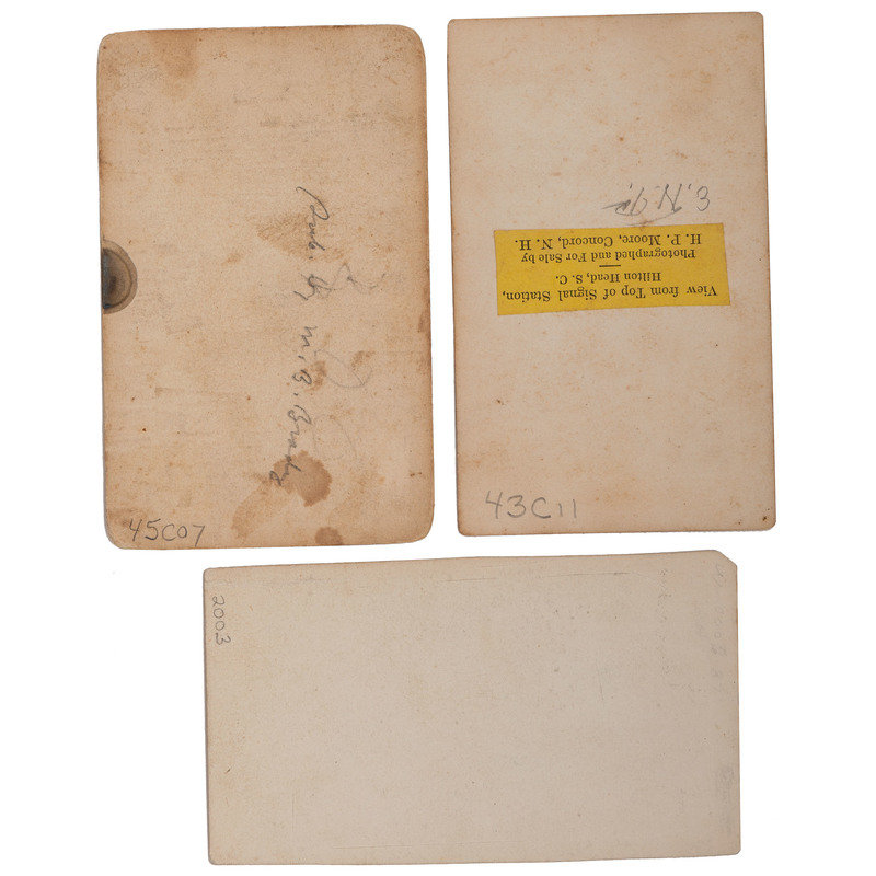 [CIVIL WAR]. A group of 3 CDVs featuring outdoor scenes, incl. View from Top of Signal Station, Hilton Head, South Carolina. Concord, NH: H.P. Moore, [1860s].