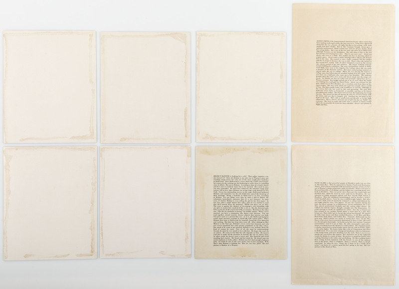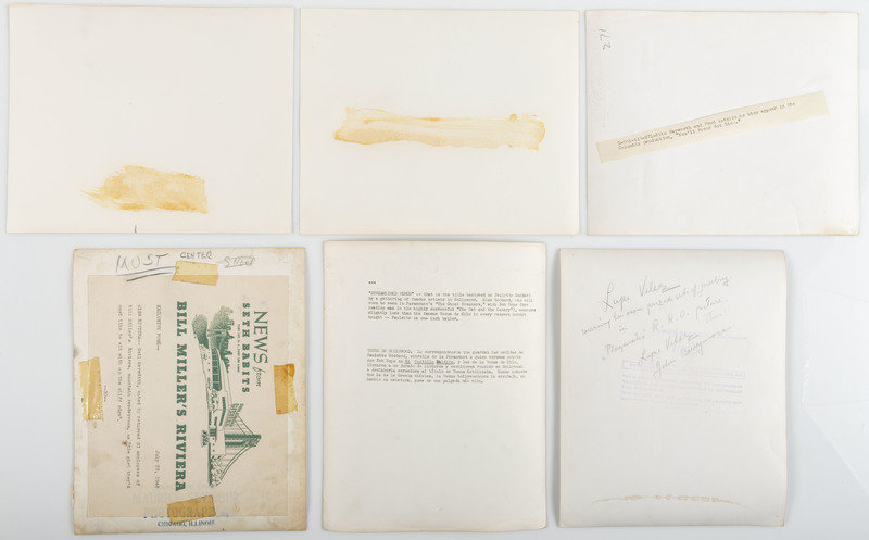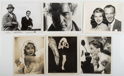 [Also with:] 21 promotional photographs, most 8 x 10 in., including: 6 photos from the film "Bad Company" (1972, Paramount) (Jeff Bridges, Barry Brown). -- 2 Marlon Brando "Last Tango in Paris" (1972). -- "Heat" Sylvia Miles, Pat Ast and Joe Dallesandro (Andy Warhol) (1972). -- "Wednesday's Child" from the 10th New York Film Festival (1974). -- Zouzou, Bernard Verley in "Chloe in the Afternoon" (1972) (10th New York Film Festival). -- Lupe Velez "Playmates" (R.K.O.). -- Gretta Garbo and George Cukor (director) (MGM) "Two-Faced Woman" (1941). -- Judy Garland in "Ziegfeld Girl" (MGM, 1941). -- Rita Hayworth and Fred Astaire, "You'll Never Get Rich" (Columbia). -- Zero the Wonder Dog (Warner Bros.) "Hight Sierra".-- 3 Sid Caesar performing on stage. -- Gail Meredith "Riviera" (1946). -- Paulette Goddard "The Ghost Breakers" (1940, Paramount).