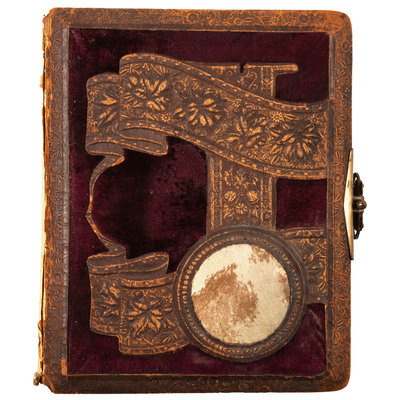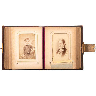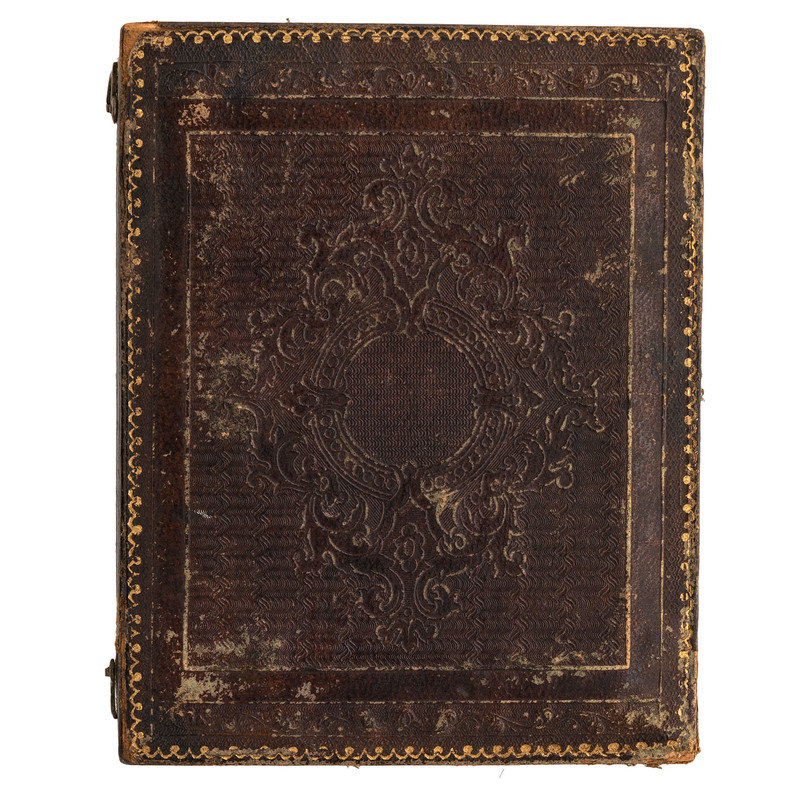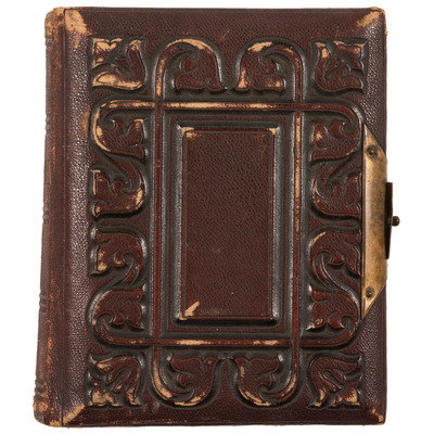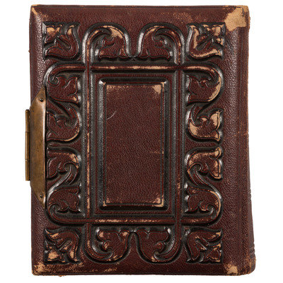 Photo album, 5 x 6 in. Embossed leather containing 42 cdvs and tintypes.