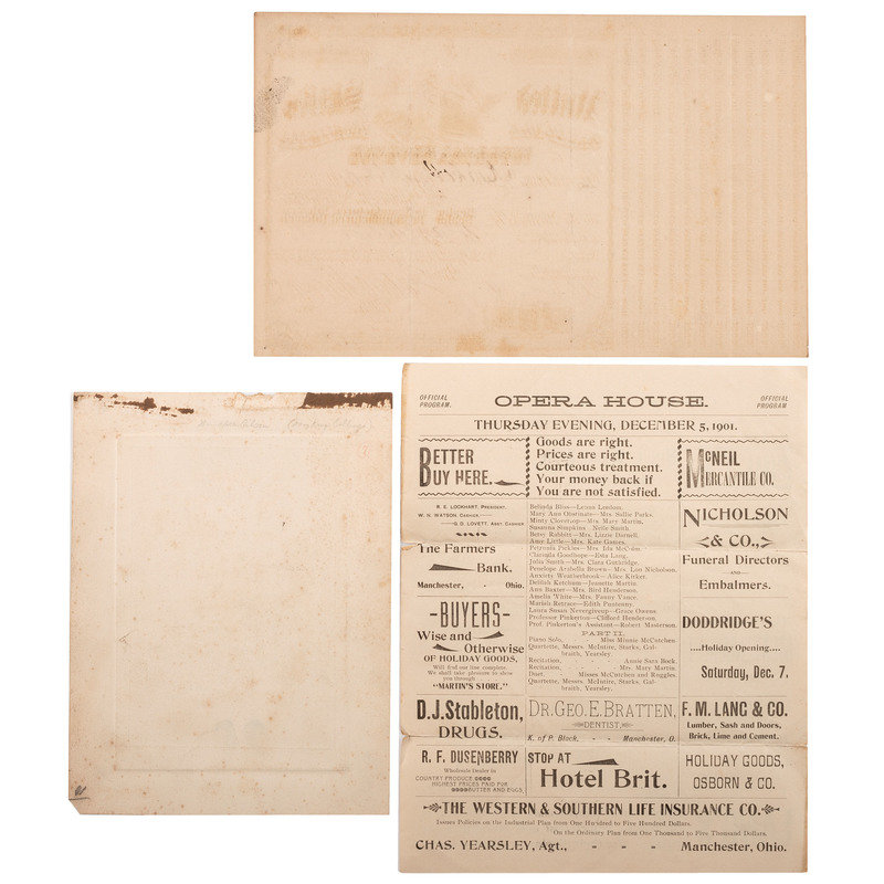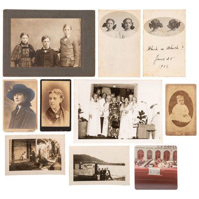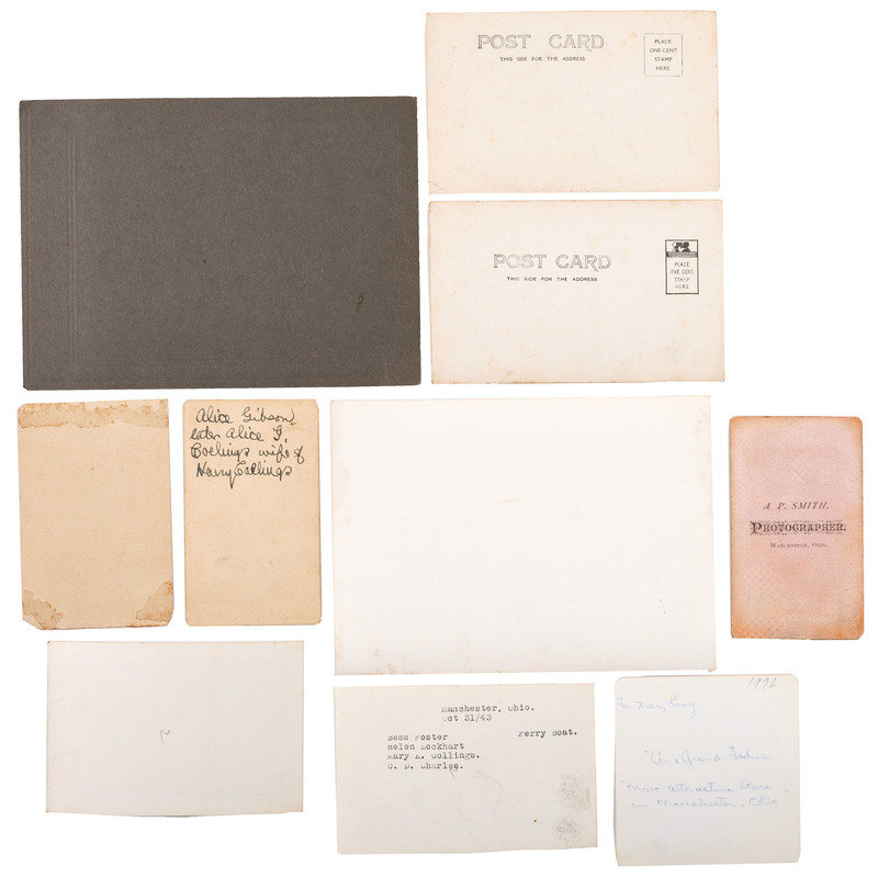 This archive appears to have been accumulated and come through Mary King Collings, who, it appears never married. She was able to do some traveling, however, and has postcards and photographs from many of the places visited. The lot consists of dozens of letters, newspaper clippings, poems, funeral cards, theater programs, genealogy notes, receipts, and more. There are photographs of all sizes scattered throughout the paper (we tried to collect most of them).