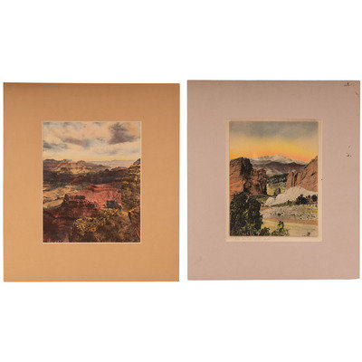 [Also with:] KOLB, Emory, photographer. Looking east from Hopi (Rowe Point) a 35 Mile View. N.p., n.d. 7 3/4 x 9 3/4 in. hand-colored collotype, mounted and matted (taped to mount, some toning). -- The Garden of the Gods. N.p.: n.p., n.d. 6 3/4 x 8 7/8 in. hand-colored collotype, mounted and matted (few spots). -- Modern print of Native American camp in southwestern location.