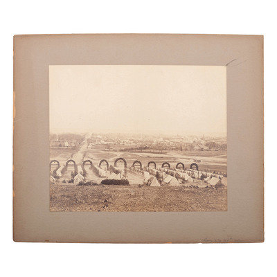 8 1/2 x 7 in. albumen photograph 12 x 10 in. cardstock mount (light toning, light surface abrasions; chipping to mount edges). Contemporary pencil inscription to recto identifies the camp.