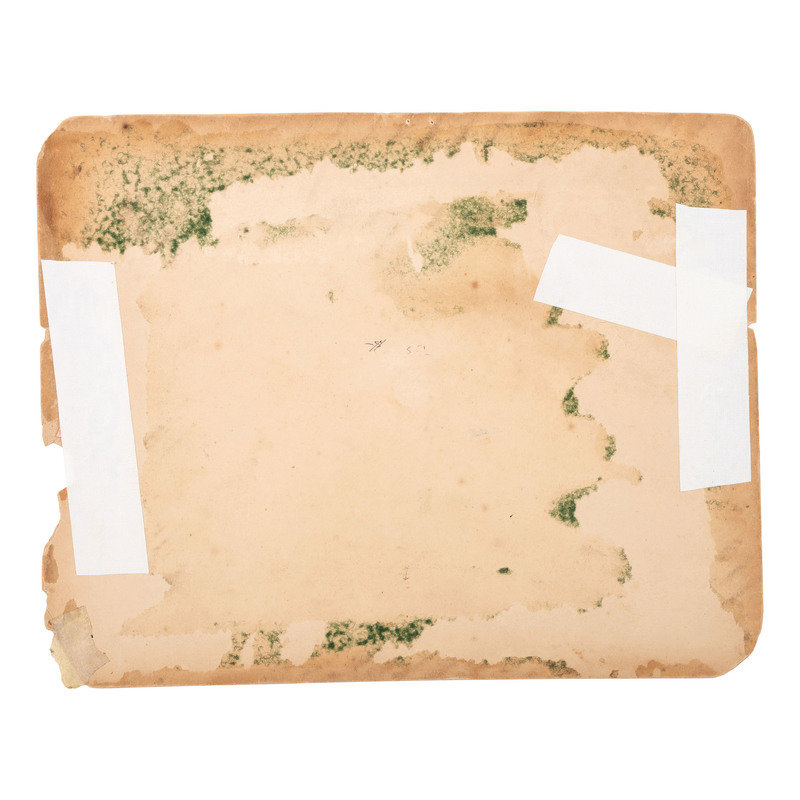 7 3/4 x 5 1/2 in. albumen photograph on cardstock mount (toned; chipping to mount edges, cloth tape reinforcement to verso). Ink inscription on mount recto, partly illegible.