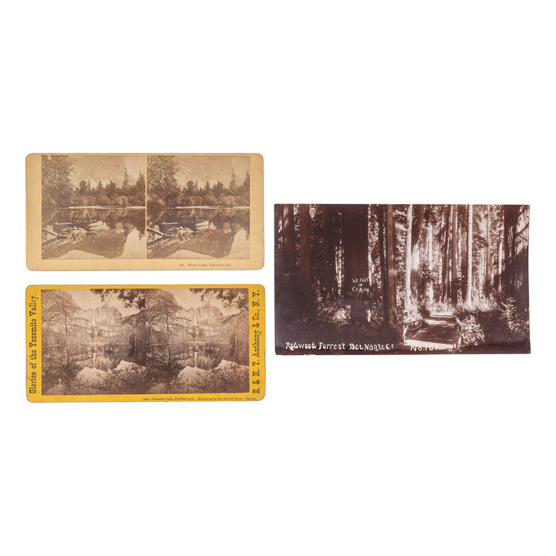 Two stereoviews: Yosemite Falls, E. & H.T. Anthony, NY and Mirror Lake, Yosemite, Cal., Killurn Brothers, Littleton, N.H.