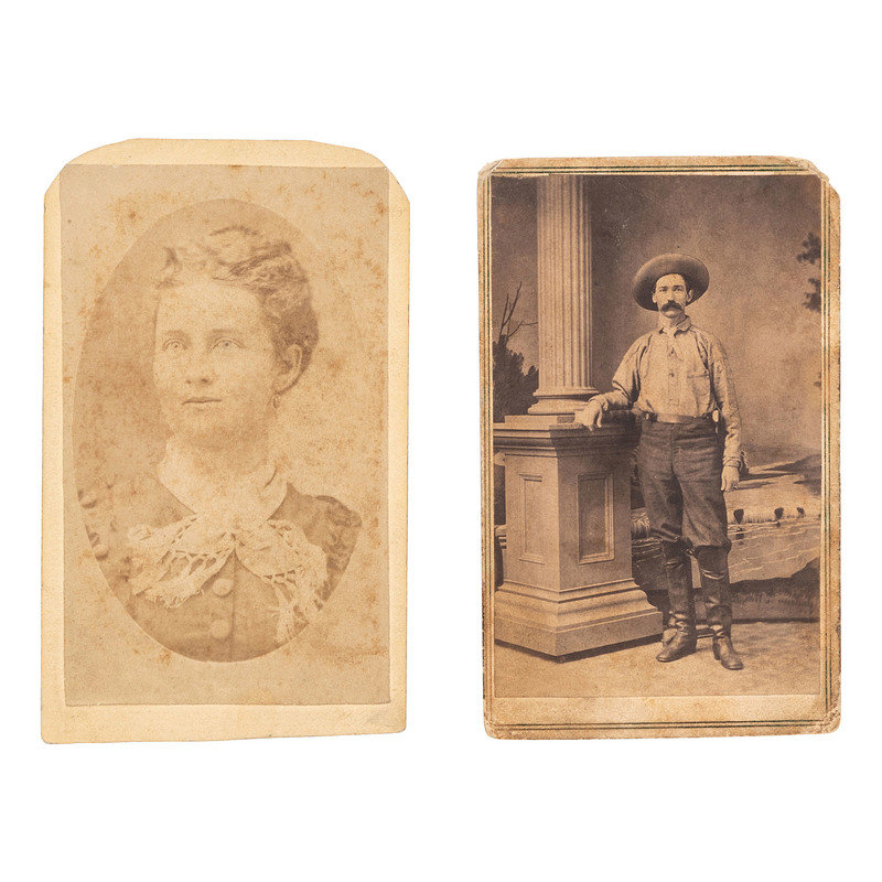 [With:] Oval vignetted studio portrait of a woman. St. Joseph, MO: J.W. Batchellei, n.d. 2 1/8 x 3 5/8 in. CDV (spotting, toned). Likely the cowboy's paramour.