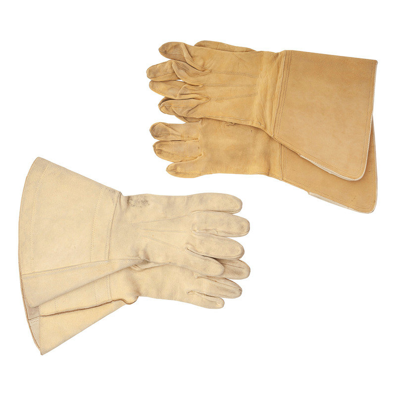 [With:] 2 pair of leather gauntlets, sizes 10 and 9 1/2 (light soil and wear on both pairs).