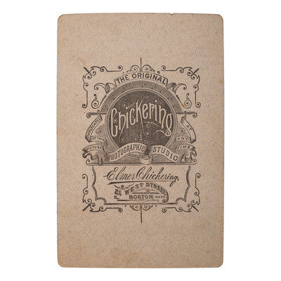 3 15/16 x 5 1/2 in. albumen cabinet card on cardstock mount (toned, light surface abrasions). Photographer's imprints on mount recto and verso.