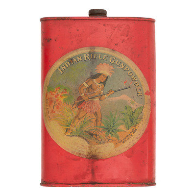 [ADVERTISING]. "Indian Rifle Gunpowder" can. Wilmington, Delaware: DuPont, 1910.