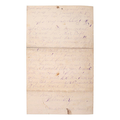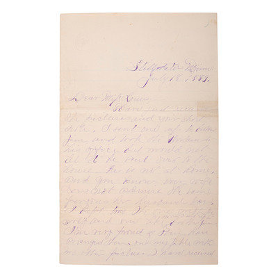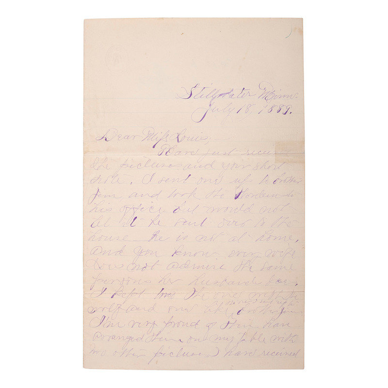 [OUTLAWS & LAWMEN]. YOUNGER, Henrietta (1857-1915). Autograph letter signed to Miss Louie. Stillwater, MN, 18 July 1889. 4 pages, 8vo, creasing, partial separation at folds repaired with tape.