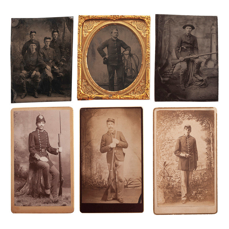 [LATE INDIAN WARS] - [WORLD WAR I]. A group of 8 photographs of soldiers, some armed, including CDVs and tintypes, comprising: