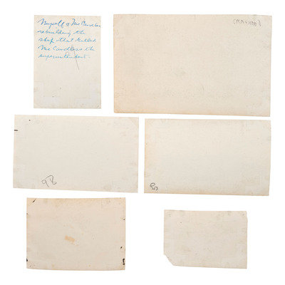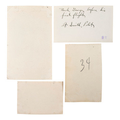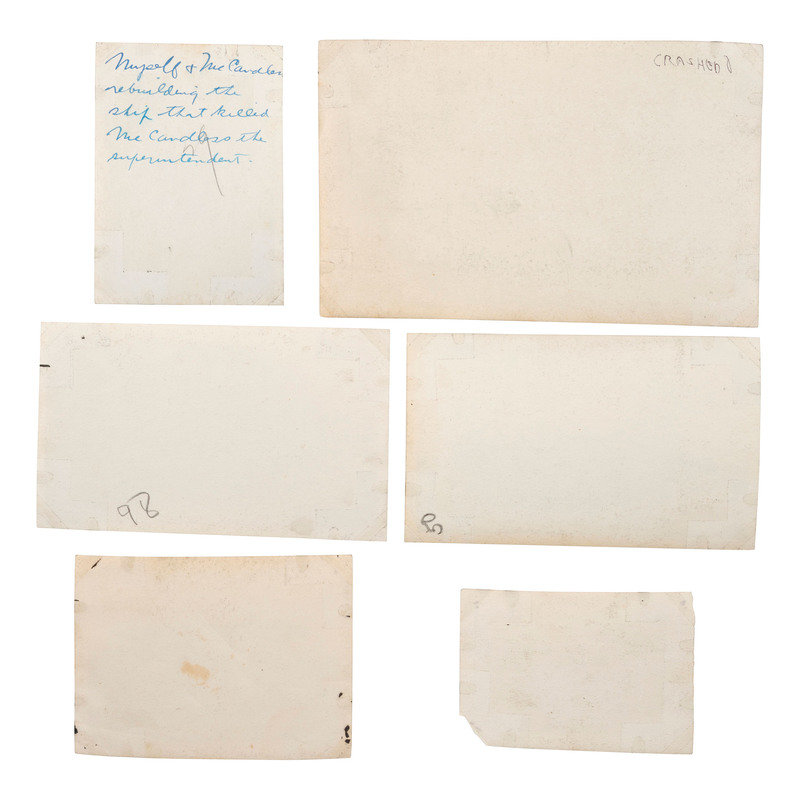 [With:] Images documenting early flight, ca first quarter twentieth century, including images of crashed planes, early aviators, hangars, and more. Handwritten inscriptions on some images identify location as College Park, Maryland. The Post Office Department initiated regular U.S. Air Mail Service from College Park Airfield to New York City on August 12, 1918. Identified images include US Army planes and US Mail planes, the “Pan American Clipper,” as well as “United Air Lines” crew members, and the Los Angeles Airport control tower. Majority of images are first half of twentieth century with sizes spanning 8 x 10 to 3 x 2 in. Conditions vary, some with adhesive residue, light soil, toning.