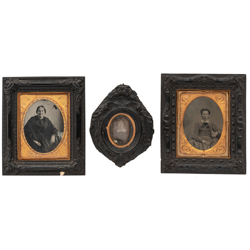 [EARLY PHOTOGRAPHY]. Daguerreotype, ambrotype, and tintype portraits of women housed in wall frames, including: