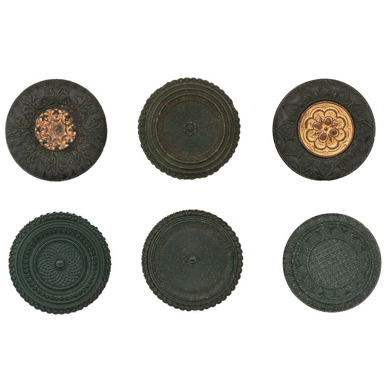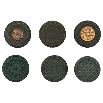 2 Unique examples [3-556Ga, 3-557Ga] and 4 Very Rare examples [3-499a, 3-502a (significant chipping to edges), 3-529at3, 3-514 (some chipping to edges)]. Conditions vary, including soiling, wear to gilt finish, and nicking and chipping to edges.