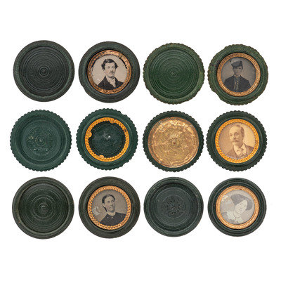 [EARLY PHOTOGRAPHY - UNION CASES]. A group of 6 assorted green "oreo" cases highlighted by Unique example, including: