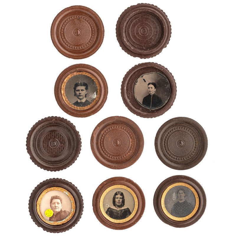 [EARLY PHOTOGRAPHY - UNION CASES]. A group of 10 brown "oreo" union cases containing images of female subjects, including: